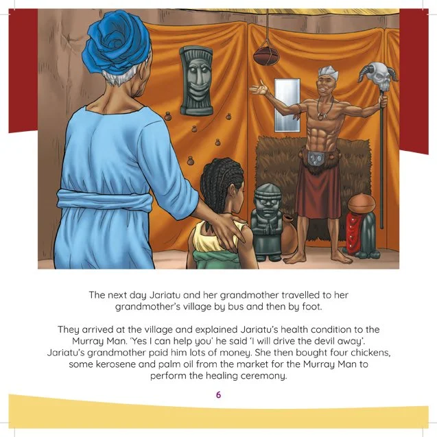 Click on below images for downloadable PDFs of Jariatu has Epilepsy (Part 1 is pages 1-7, Part 2 is pages 8-16)